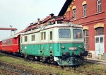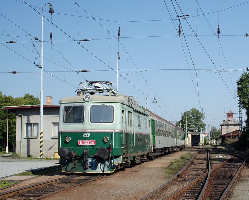 Lokomotiva 100.001 před odjezdem vlaku 28409 z Bechyně do Tábora 19. srpna 2007 (foto Vladislav Píša)
