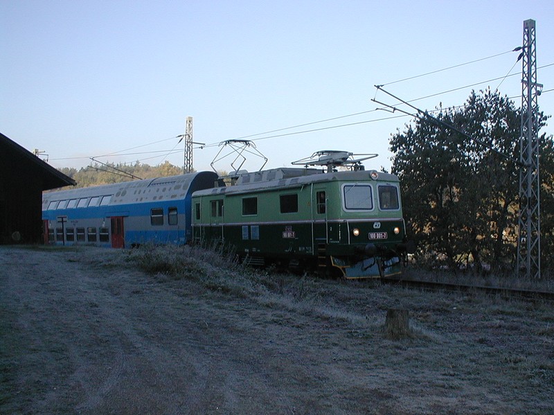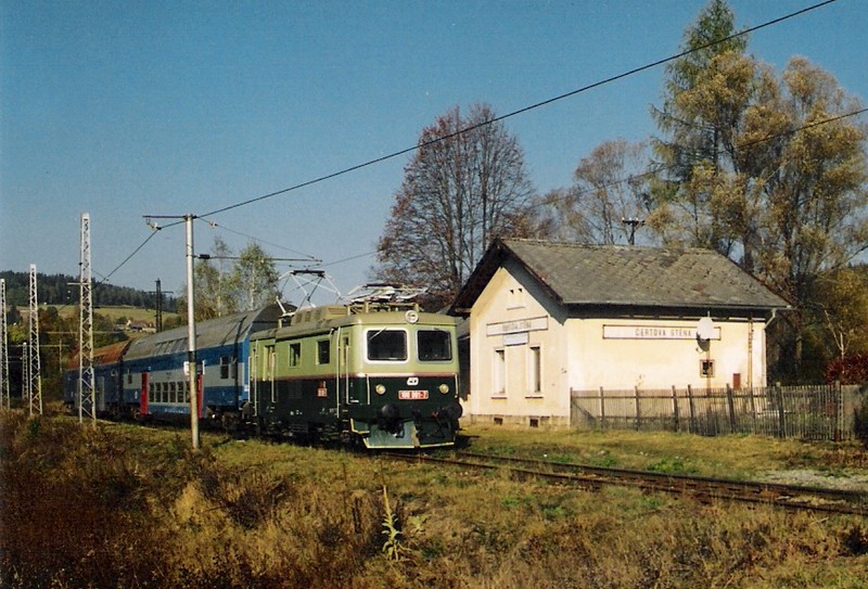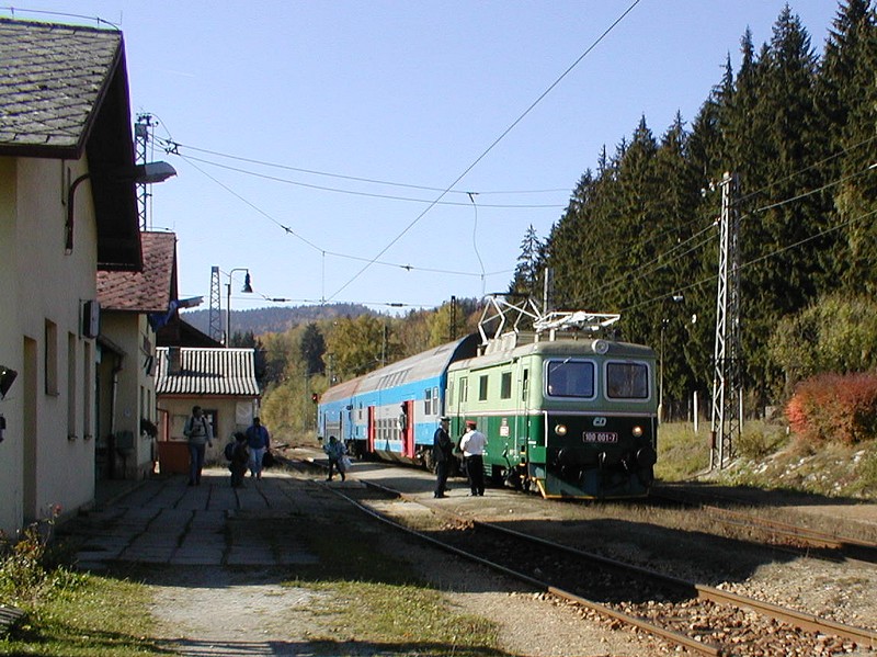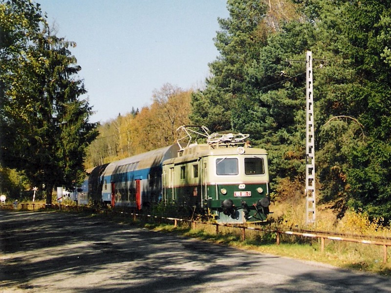 Osobní vlak s "bobinkou" 100.001 zastavil 17. října 2003 na zastávce Čertova stěna (foto Jan Kubeš)
