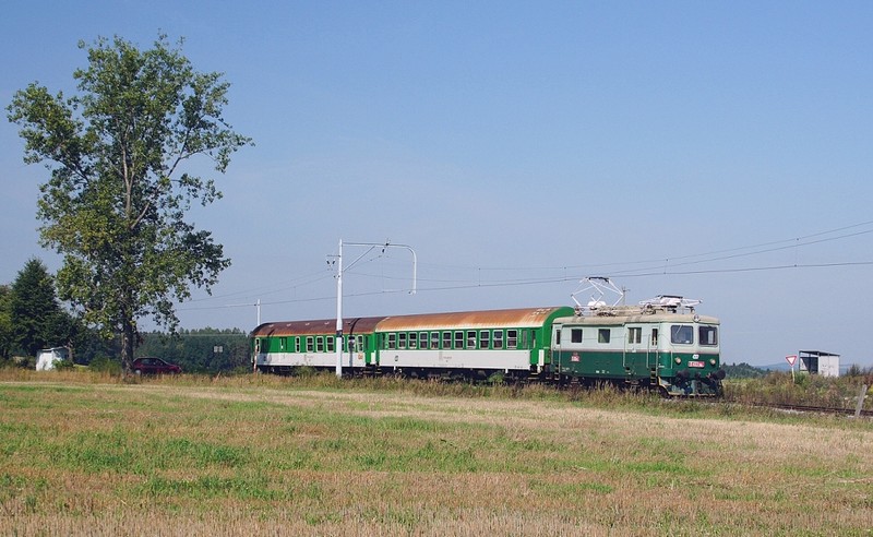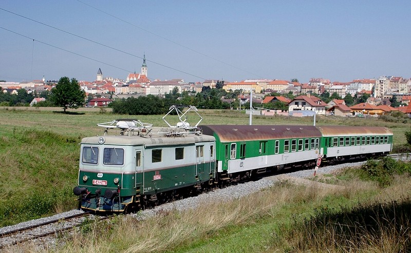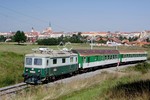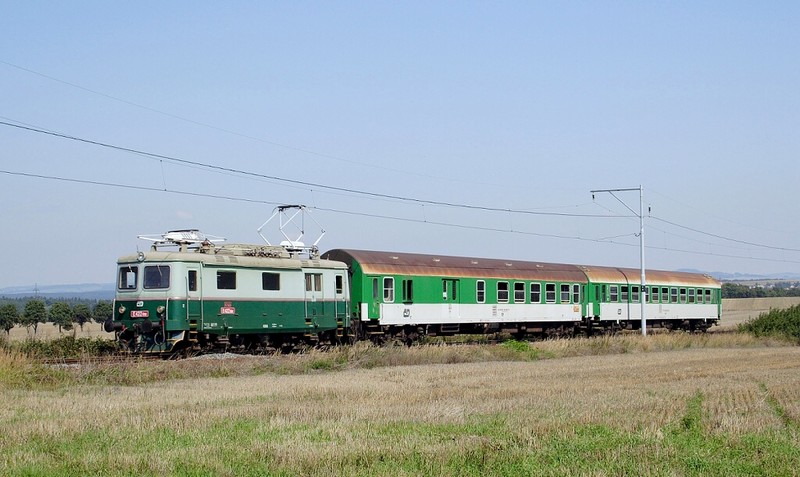 Lokomotiva 100.001 s vlakem Os 28408 před zastávkou Třebelice 19. srpna 2007 (foto Vladislav Píša)