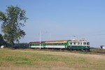 Vlak Os 28410 ve složení 100.001 + BDs + Bt v oblouku za zastávkou Horky u Tábora 19. srpna 2007 (foto Vladislav Píša)