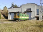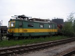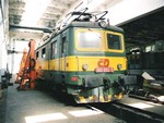 Lokomotiva 100.002 před remízou depa Vyšší Brod klášter během ukončení stejnosměrného provozu 17. října 2003 (foto Luboš Klečatský)