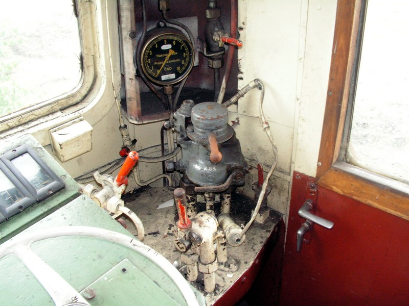 tlakoměry, na pultu strojvedoucího spouštěče a volant kontroléru (foto Josef Rákos)