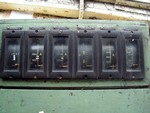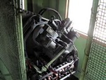tlumivky, vlevo za pletivem hlavní kontroler s pneumotorem; svislá trubka je přívod stlačeného vzduchu ke sběračům; jako zajímavost lze